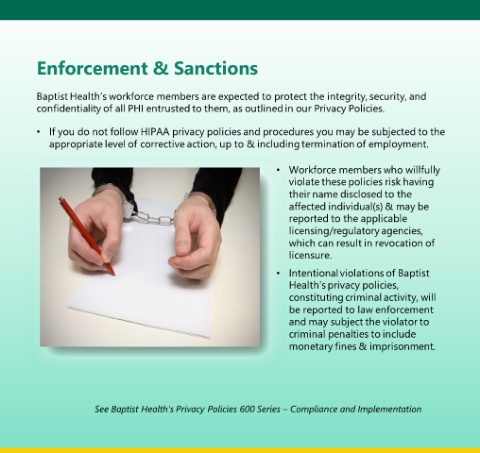 See Baptist Health’s Privacy Policies 600 Series – Compliance and Implementation