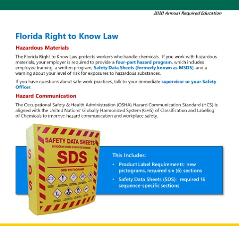 The Florida Right to Know Law protects workers who handle chemicals. If you work with hazardous