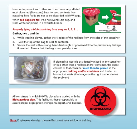 Properly tying a biohazard bag is as easy as 1, 2, 3 . . .