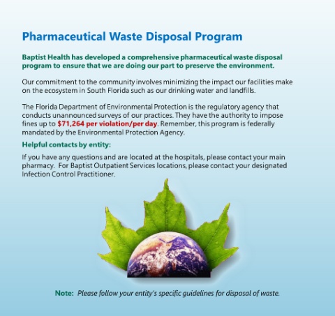Baptist Health has developed a comprehensive pharmaceutical waste disposal