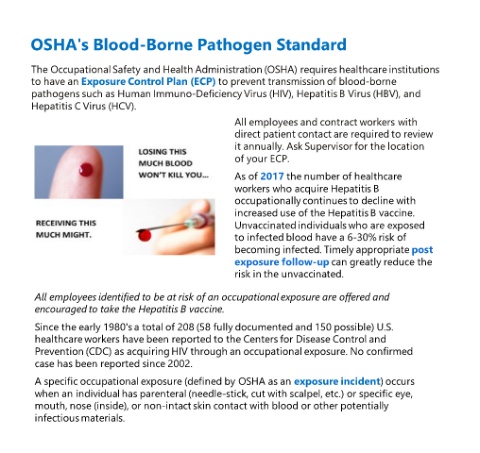 The Occupational Safety and Health Administration (OSHA) requires healthcare institutions