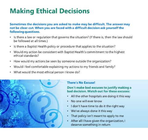 • Would my action be consistent with Baptist Health's commitment to the highest