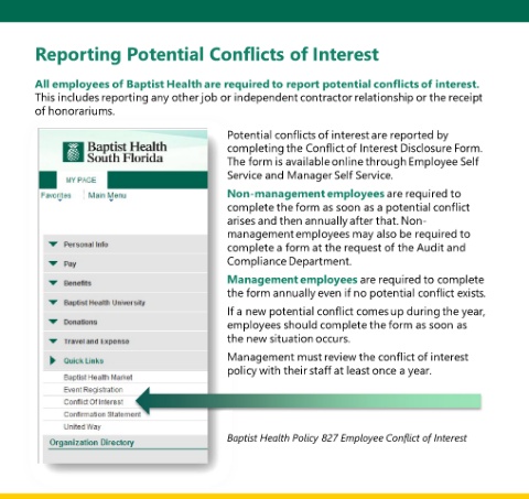 All employees of Baptist Health are required to report potential conflicts of interest.