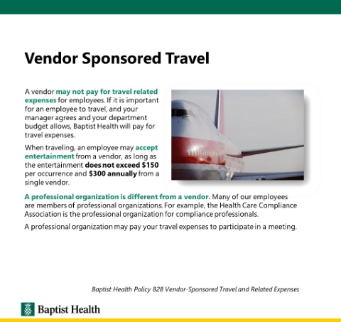 Baptist Health Policy 828 Vendor-Sponsored Travel and Related Expenses