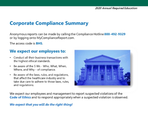 Corporate Compliance Summary